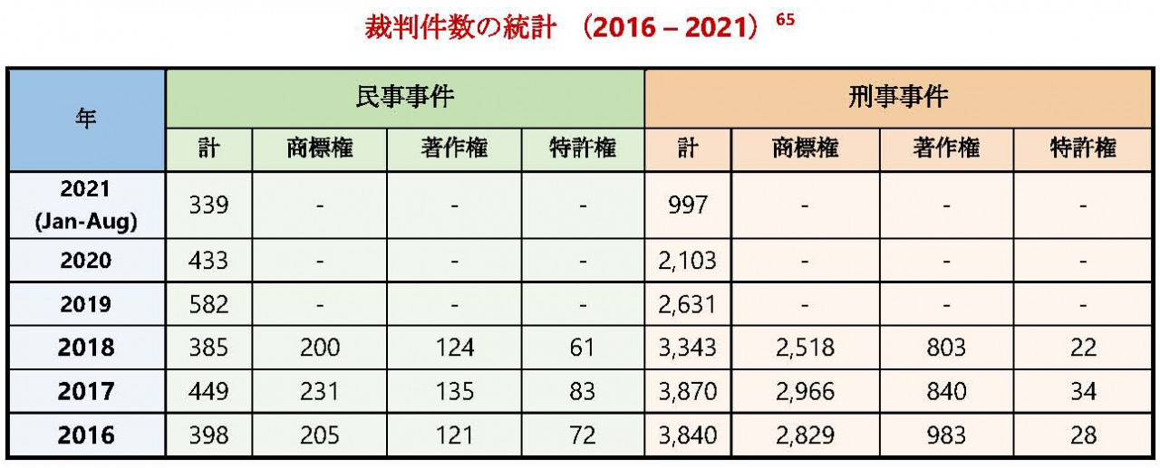 また、刑事救済とは、警察・DSI及び検察による捜査並びに刑事裁判を通じた救済手段ですが、侵害行為を直ちに終結させる可能性が高いと考えている権利者が多いことから、商標法及び著作権法違反に対する救済手段として積極的に利用される傾向にあるようです。