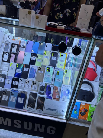 特に印象に残ったのは4階のフロアで、圧倒的な件数のモバイル関連店舗が並んでおり、秋葉原のような雰囲気があります。ここでは「スーパー・コピー」と日本語で声が掛かることが多々あり、ブルートゥース・イヤホンを手にとってみたところ、正規品が数万円するのに対し、模倣品は数千円という価格で、こちらが黙していると、すかさずディスカウントの申し出をしてきました。店側は正規品に関しては値引きしないという態度を守っており、販売者が正規品と模倣品を明確に認識した上で売り方を変えていることが確認出来ました。