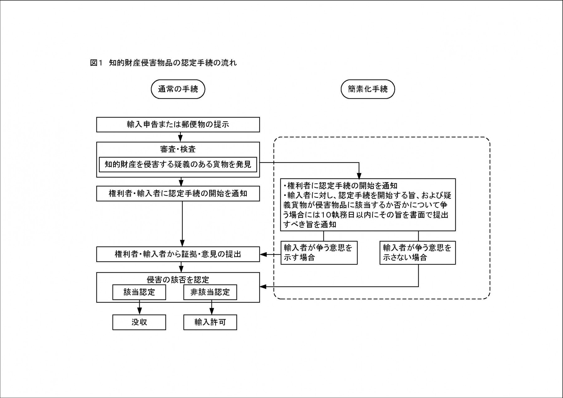 「差止申立てが受理されている侵害疑義物品が発見された際、認定手続開始通知に併せて、輸入者等に対し、侵害品に該当しないこと(争う旨)を申し出る意思の有無を確認するという点が通常の認定手続と大きく異なります。輸入者等が争う旨の意思表示をしなかった場合、税関は差止申立書等の内容に基づき該当認定を行い、権利者は意見・証拠を税関に提出する必要がありません。」